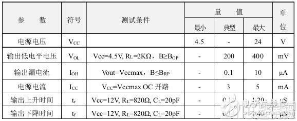 磁特性: (VCC=4.5~24V) 1mT=10GS