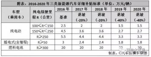 ②免征購置稅今年底結(jié)束,2018年現(xiàn)行補(bǔ)貼標(biāo)準(zhǔn)退坡20%。其中,乘用車、專用車補(bǔ)貼退坡約20%,客車退坡30%-50%,地方配套補(bǔ)貼比例由1∶1下降至1∶0.5。嚴(yán)重依賴政府的補(bǔ)貼來"哺育"的新能源車企一時受到了嚴(yán)重打擊,要求動力電池企業(yè)大幅降價。