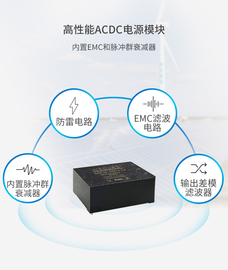 GAP系列—是HIECUBE為客戶提供的小型封裝形式的高性能模塊電源。該系列電源具有交直流兩用寬電壓輸入,內(nèi)置防雷防浪涌電路,內(nèi)置差模、共模濾波,效率高達(dá)83 %(全系列同步整流)。電源采用灌封封裝,具有防塵和防潮功能。本系列電源符合EN55032 Class B電磁兼容(EMC)特性和Class Ⅱ 隔離級(jí)別(安規(guī)),典型電路即可通過認(rèn)證測(cè)試。
